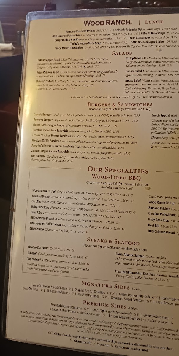 I went to Wood Ranch with my family for lunch and I was not disappointed. I thought the service and food was great. Our server Pat K. was an excellent server. I am always happy with consistent quality of the food. I made a sandwich with the tri tip, mac and cheese, coleslaw in between their classic garlic rolls topped with barbecue sauce. I call it the B slider. I’ll be back again.